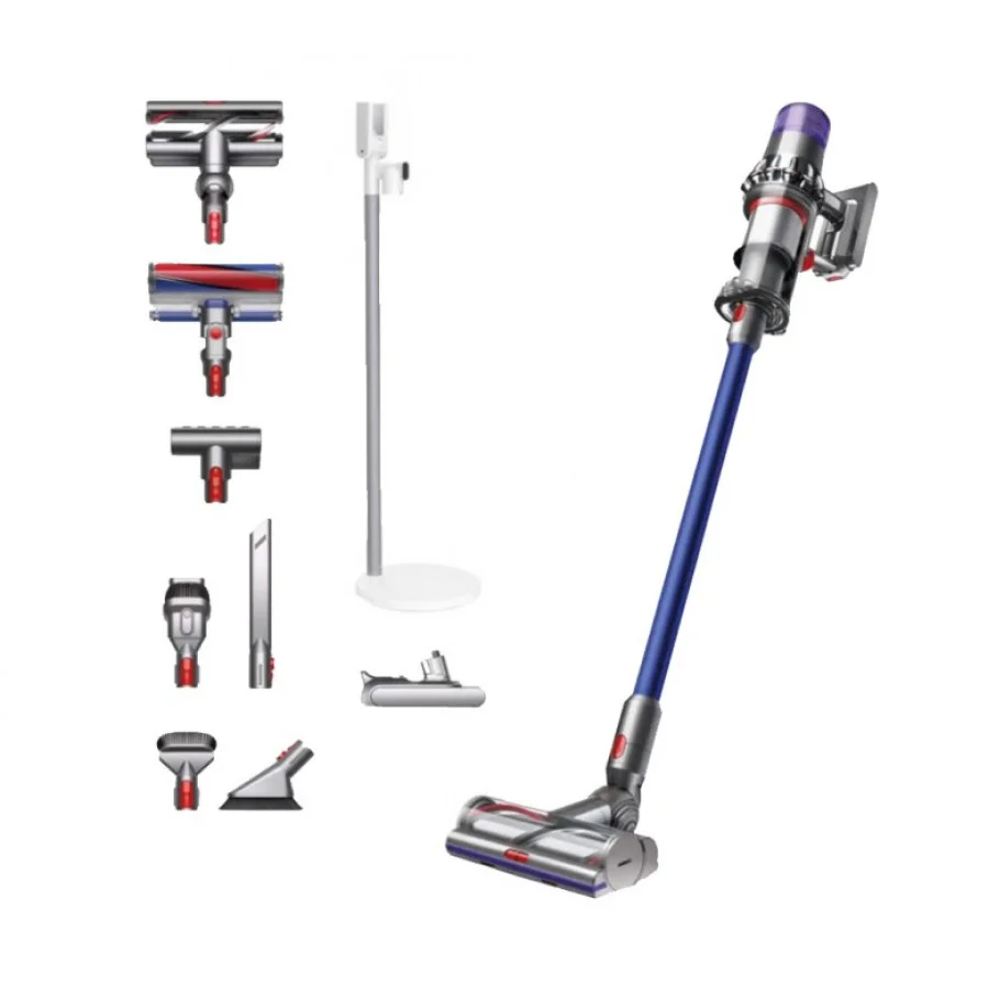 Bипускається в стильному сучасному дизайні. Він є автономним пристроєм і призначений для проведення сухого прибирання. Модель живиться від 7-елементного акумулятора, виготовленого із сплаву нікелю, кобальту і алюмінію. Запасу енергії досить для 60 хвилин безперервної роботи, а для повного відновлення заряду потрібно 4,5 години. Встановлений в апараті двигун потужністю 525 Вт розвиває 125 000 оборотів в хвилину, створюючи потужність всмоктування 185 Вт. Циклонная система з технологією Radial Root Cyclone забезпечує вловлювання дрібних частинок пилу і зберігає силу всмоктування постійною протягом усього прибирання. Великий набір насадок дозволяє ефективно очищати будь-які поверхні і важкодоступні місця. Триступенева фільтрація повітря, що виходить, в тому числі НЕРА-фільтром, підтримує чистоту атмосфери під час роботи. Пилосос 2в1 (вертикальний + ручний) Dyson Cyclone V11 Absolute Extra Pro заряджається і зберігається на настінного або підлогової док-станції.