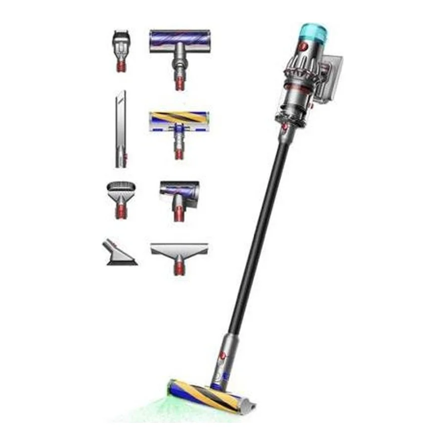Комплектація: вертикальний пилосос універсальна щітка із прямим приводом насадка з м'яким валиком та вбудованим лазером міні-електрощітка із захистом від намотування волосся щілинна насадка комбінована насадка насадка для оббивки дуже жорстка кисть дуже м'яка кисть кріплення для насадок на трубу док станція зарядний пристрій документація. Акумулятор, що знімається.