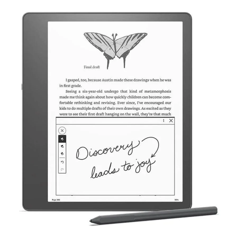 Хочете вести щоденник, робити начерки або просто робити нотатки? З Kindle Scribe це стає легким і зручним. Він пропонує цифровий блокнот, який дає змогу писати прямо на екрані, зберігаючи всі ваші думки та ідеї.
