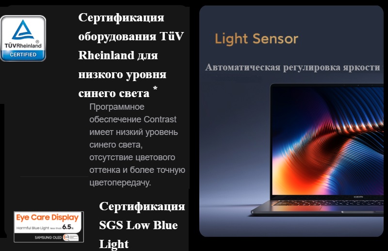 - Световой датчик. Автоматическая регулировка подсветки клавиатуры