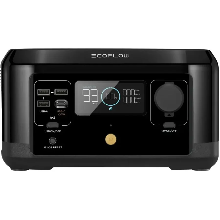 EcoFlow River можна заряджати від розетки, автомобіля чи сонячної панелі. Найшвидший спосіб — за допомогою домашньої розетки. Завдяки сучасній технології X - Stream за годину пристрій заряджається до 80%, а повний заряд досягається за 1.5 години. Також River можна зарядити від автомобільної зарядки (3 години до 100%) або за допомогою сонячних панелей (наприклад, панель у 110 Вт заряджає протягом 1 - 2 годин).