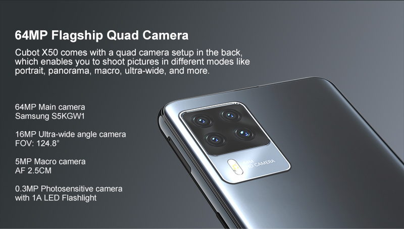 Cubot X50 поставляется с установкой четырехкамерной камеры сзади, которая позволяет снимать снимки в различных режимах, таких как портрет, панорама, макро, сверхширокие и многое другое.